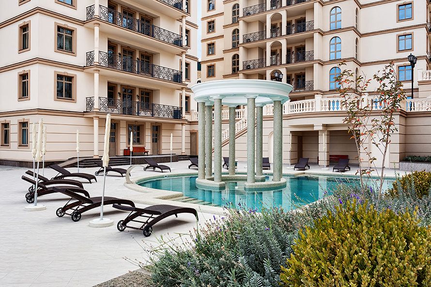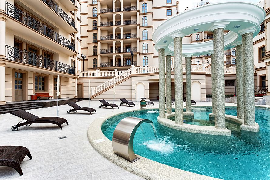 Премиальную инфраструктура – 4 бассейна, СПА, ресторан, охрана. Это повышает стоимость аренды и привлекает состоятельных клиентов.