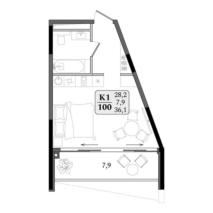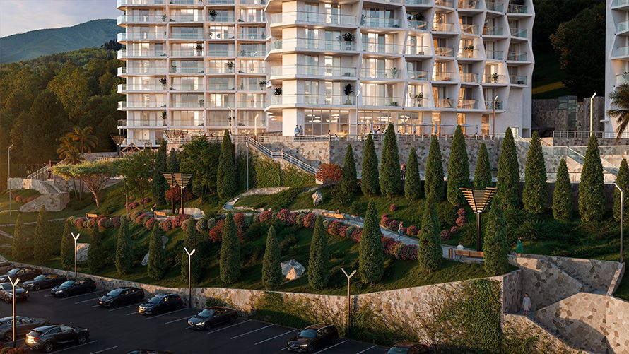Разнообразие планировок – от малых студий (32,9 м²) до двухуровневых пентхаусов (199 м²) с видами на море и горы.